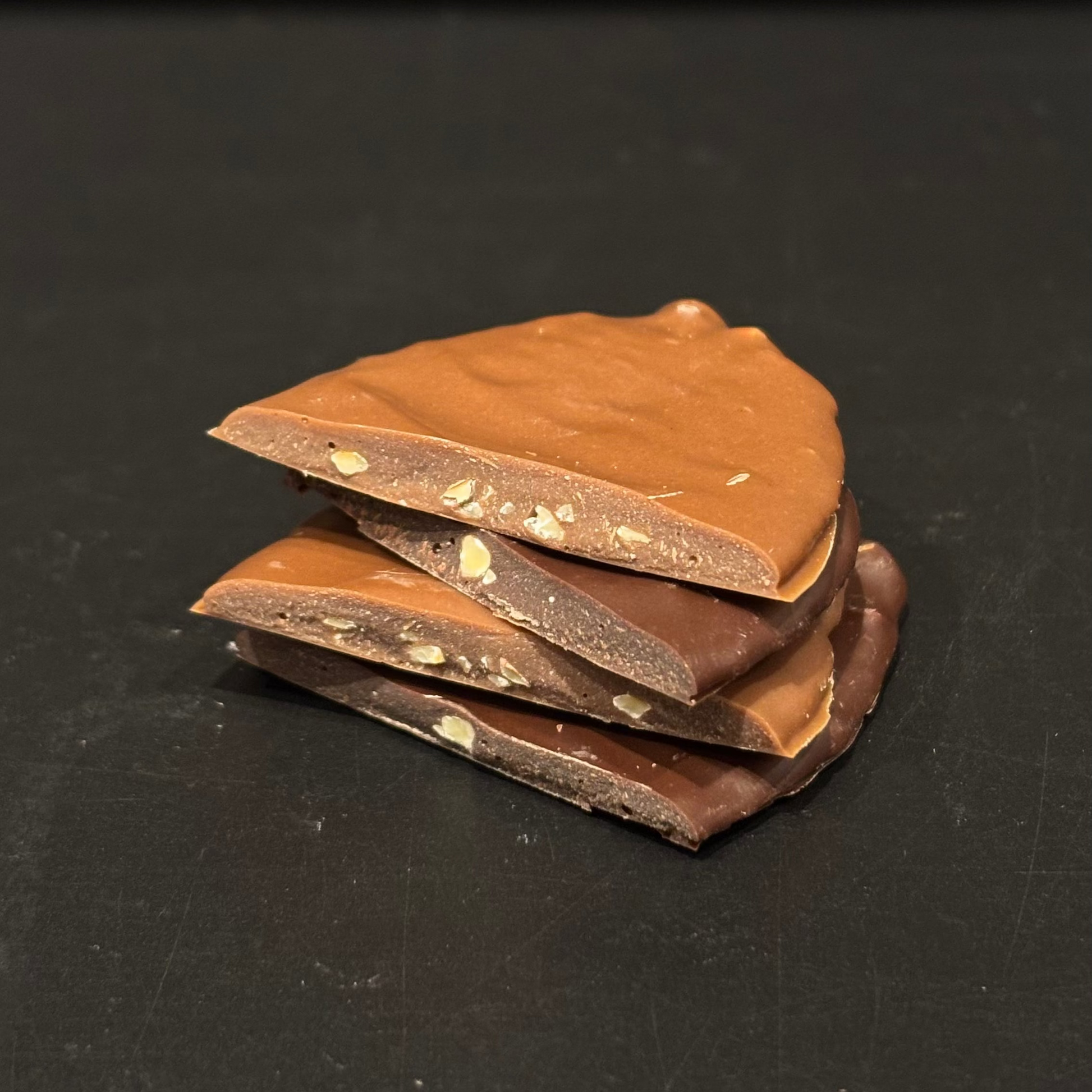 Un palet de chocolat sublimé par des éclats d’amandes croquantes.
